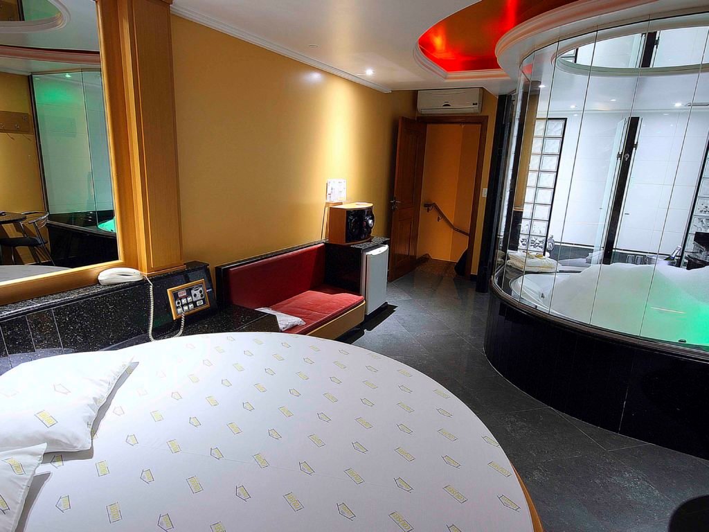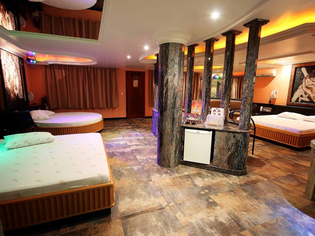 Você e sua acompanhante vão se sentir como se fossem imperador e imperatriz nesta suíte do Motel Coliseu.